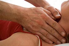 Mit den Händen führt der Physiotherapeut langsame, rhythmische und kreisförmige Bewegungen aus. Je nach Beschwerdebild werden Kopf, Bauch,